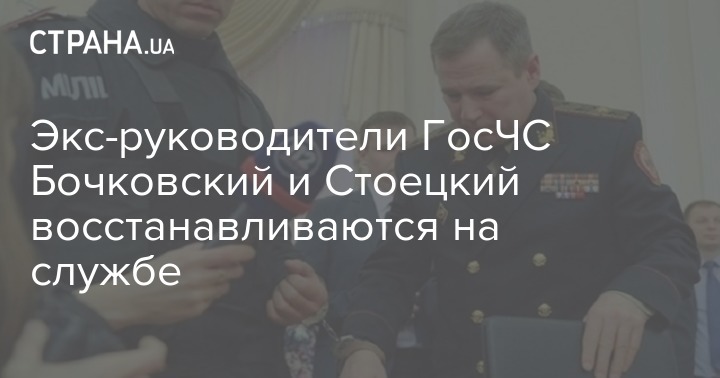 Бывший руководитель Государственной службы по чрезвычайным ситуациям Сергей Бочковский и его заместитель Василий Стоецкий, которых год назад публично задерживали на заседании Кабмина, проходят процедуру возвращения на службу. Как сообщил "Стране" сам Василий Стоецкий, до самого восстановления еще не дошло - сейчас он "проходит этапы на пути к восстановлению" в ГосЧС.