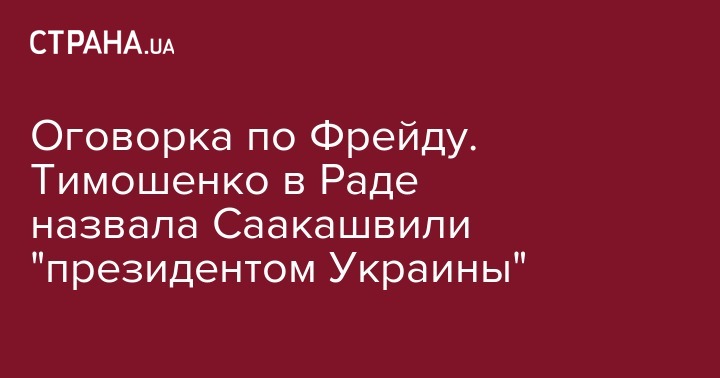 Лидер партии "Батькивщина" Юлия Тимошенко во время выступления в сессионном зале Верховной Рады оговорилась и назвала Михаила Саакашвили президентом Украины. Об этом стало известно из онлайн-трансляции на канале "Рада".