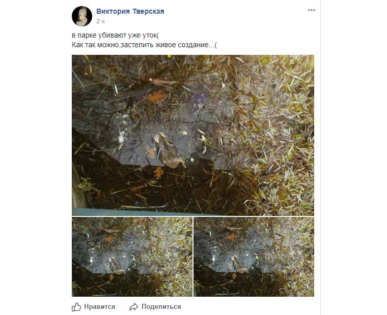 "В парке убивают уже уток. Как так можно - застелить живое создание..." - написала Виктория Тверская.