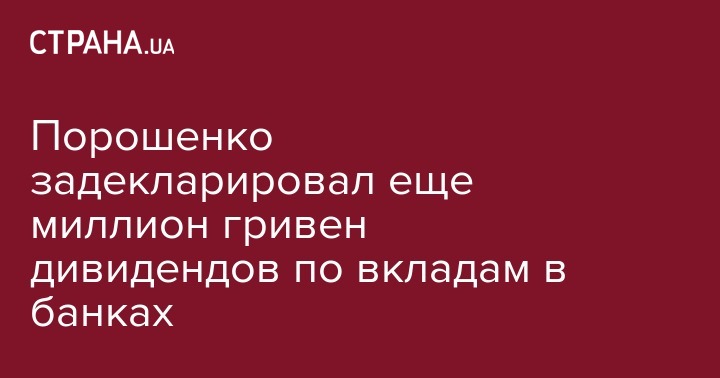 Ранее "Страна" сообщала, что в ноябре Порошенко добавил в декларацию миллионный доход от вкладов в банке.