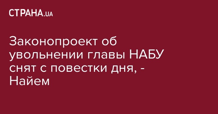 Законопроект об увольнении главы НАБУ снят с повестки дня, - Найем
