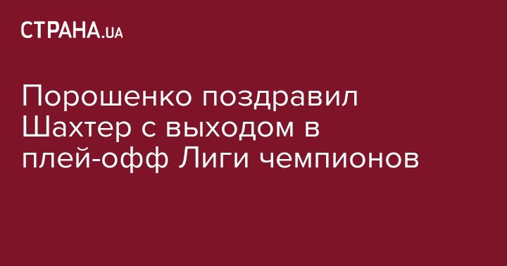 Порошенко поздравил Шахтер с выходом в плей-офф Лиги чемпионов