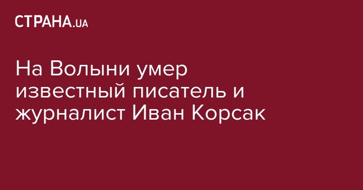 В четверг, 7 декабря 2017 года, в возрасте 71 года на Волыни скончался известный украинский писатель и журналист Иван Корсак.