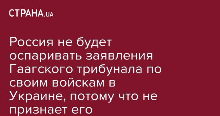 Россия не будет оспаривать заявления Гаагского трибунала по своим войскам в Украине, потому что не признает его
