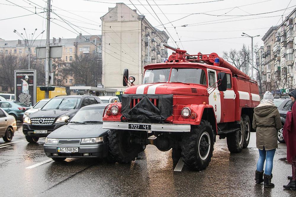 7 декабря в Киеве на улице Большая Васильковская возле дворца "Украина" произошло ДТП. Там столкнулись автомобиль "Богдан" и пожарная машина. Об этом сообщает Информатор.