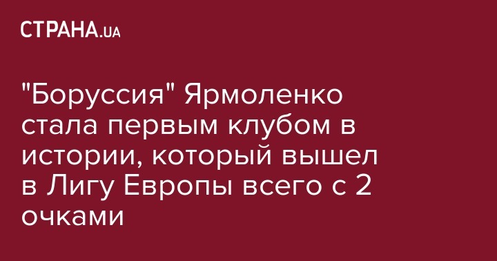Дортмундская "Боруссия", где играет наш Андрей Ярмоленко, стала первым клубом в истории Лиги чемпионов, которая по итогам группового турнира вышла в Лигу Европы всего с двумя очками в своем активе.
