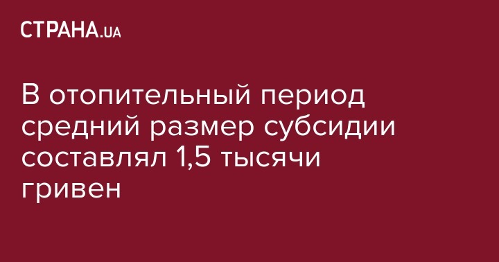 Вице-премьер-министр Павел Розенко сообщил о том, что средний размер жилищной субсидии в отопительный период 2015/2016 годов составил 1,5 тыс. гривен. Заявление об этом вице-премьер сделал в эфире "5 канала", передают Украинские новости