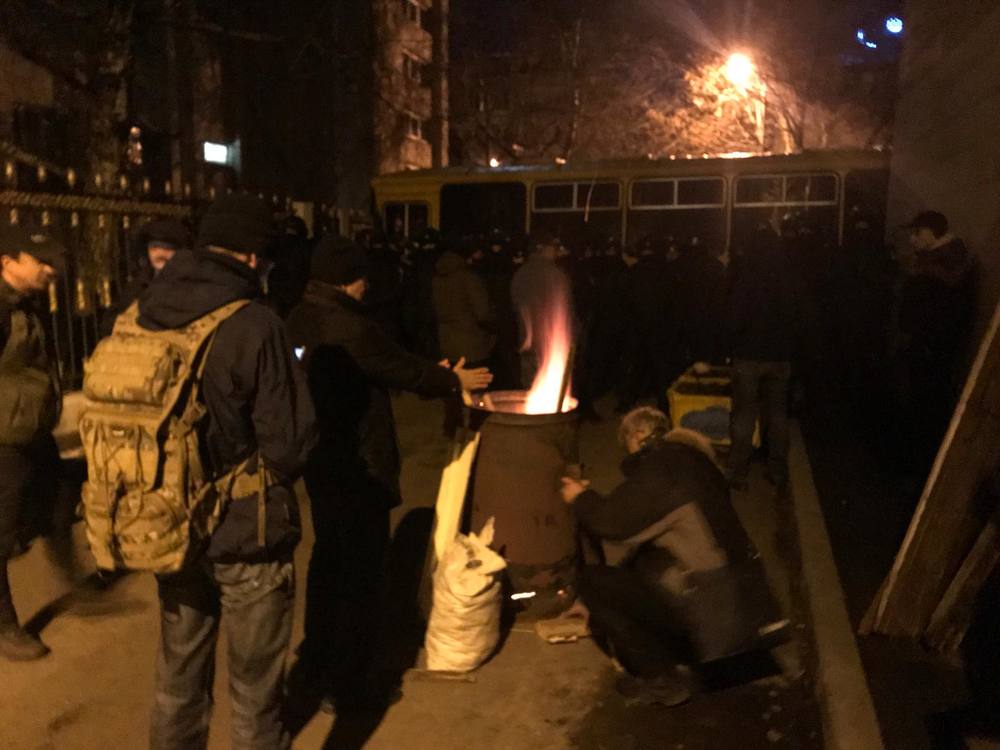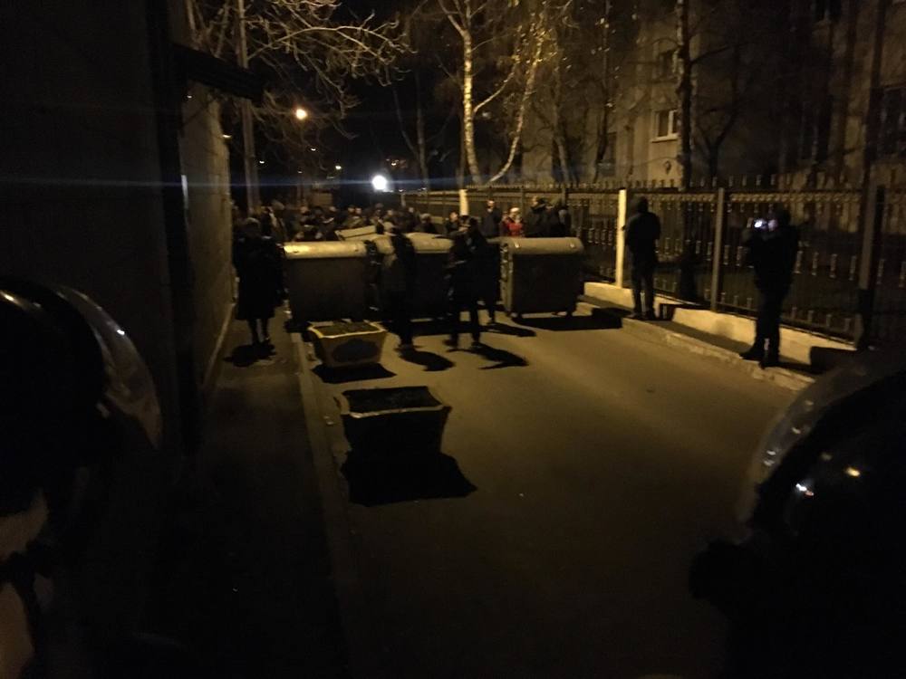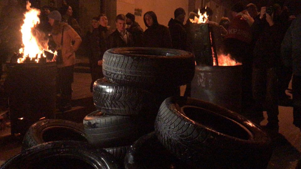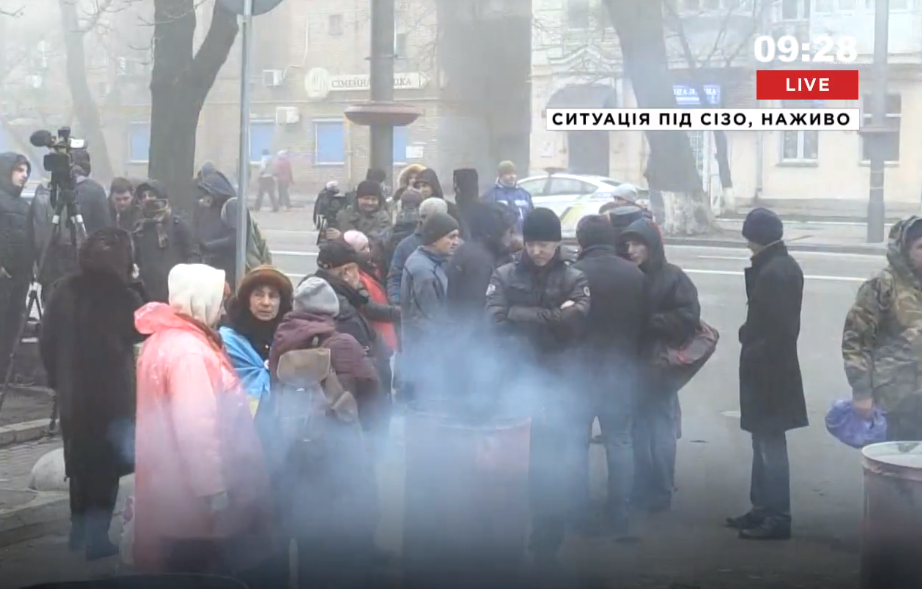 Сторонники политика перекрыли Аскольдов переулок возле киевского СИЗО, установив металлические бочки, в которых жгут деревянные ящики. В связи с этим в близлежащих кварталах ощущается запах гари.