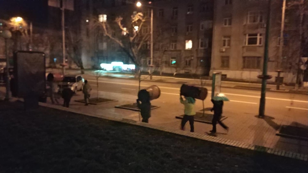 1.11 - К СИЗО несут бочки. В них - дрова. Вероятно, собираются ночевать? Или для барикады?