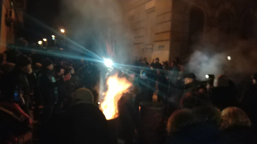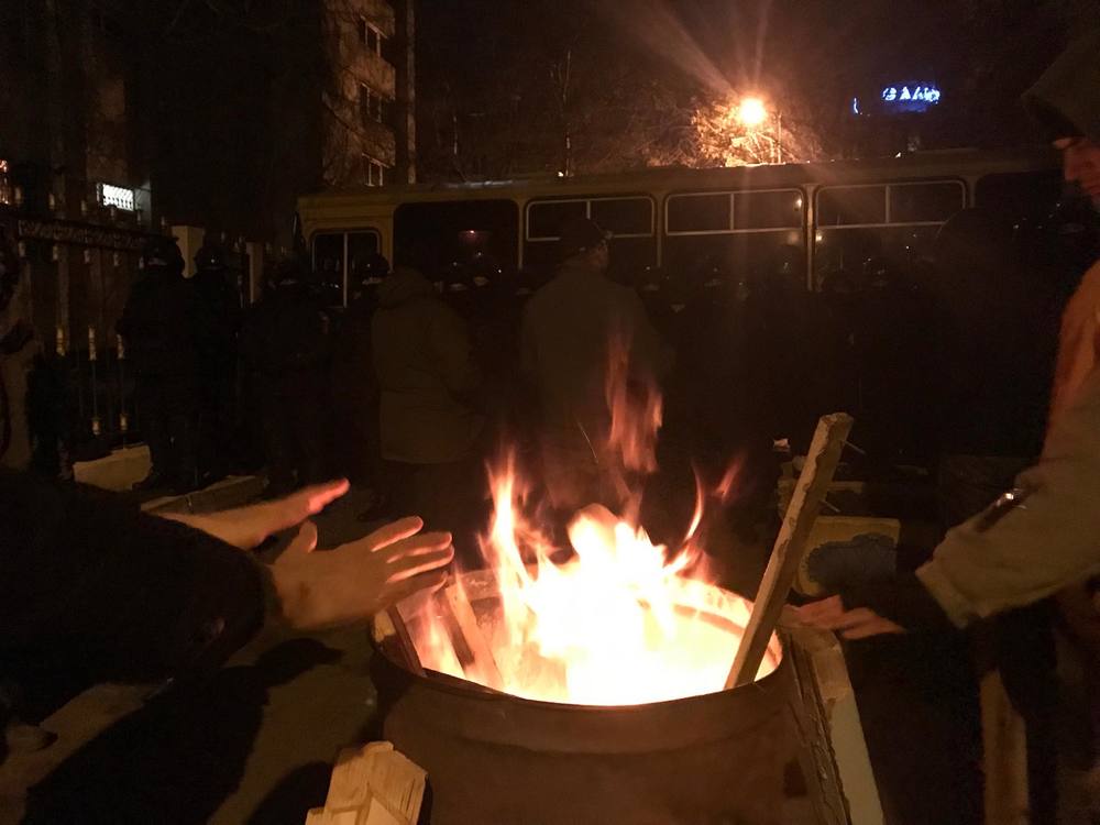 01.31 - Собравшиеся начали жечь костры в бочках.