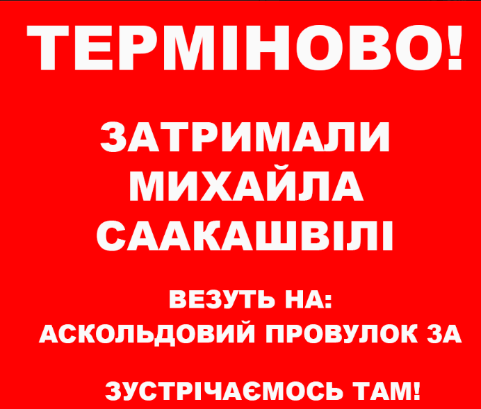 Позже эту информацию подтвердил соратник Саакашвили Давид Сакварелидзе в Facebook. Он написал, что Михаила Саакашвили везут в Управление СБУ, расположенное в Аскольдовом переулке города Киева.