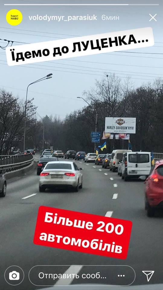 12.32 - Более 200 автомобилей едут домой к Юрию Луценко сообщил народный депутат Украины Владимир Парасюк. Об этом депутат написал на своей странице в Instagram.