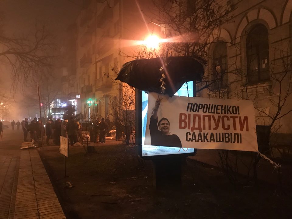 Протестующие вывесили плакат с надписью: "Порошенко! Освободи Саакашвили!".