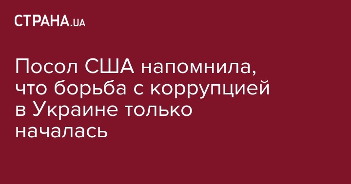 Посол США в Украине Мари Йованович констатирует, что борьба с коррупцией в Украине только началась. Об этом сообщает пресс-служба посольства США в Украине в Twitter.
