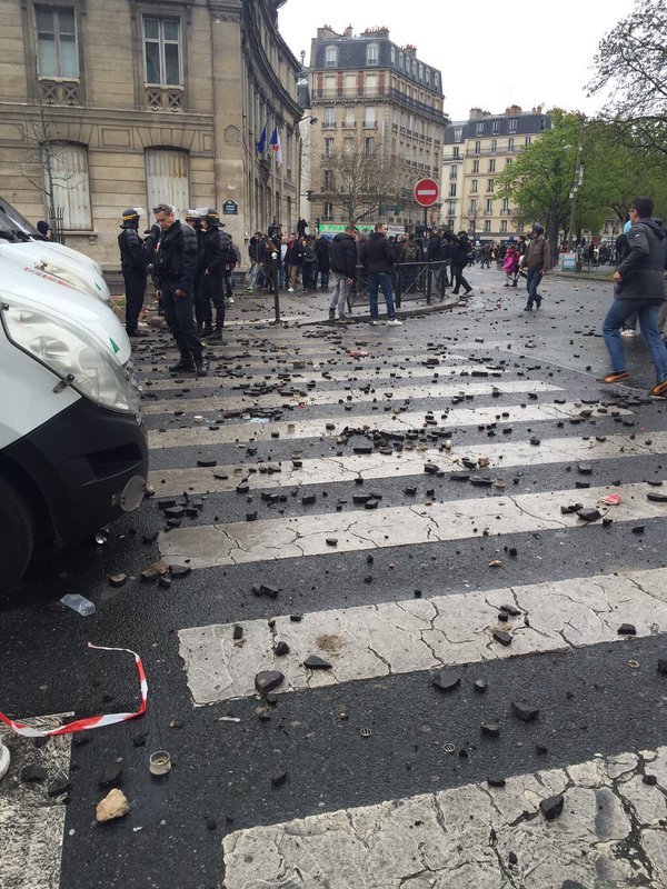 Протесты также направлены против визита в Париж премьер-министра еврейского государства Биньямина Нетаньяху и его переговоров с президентом республики Эмманюэлем Макроном.