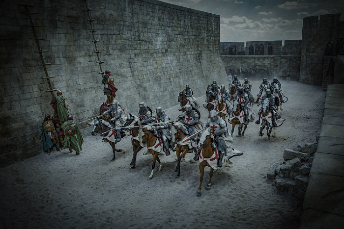 Главными персонажами являются бывший участник битвы при Акре, а ныне новый глава ордена сэр Лэндри, мечтающий найти Святой Грааль (Том Каллен из "Аббатства Даунтон"), его "брат по оружию" и мастер владения мечом Гавейн (Падрейк Делани из "Ветра, который качает вереск"), а также опытный рыцарь Танкрид (Саймон Меррелс из "Людей будущего" и "Спартака"). За романтическую составляющую отвечают королева Жанна (Оливия Росс, "Война и мир") и принцесса Изабелла. Роль последний исполнила Сабрина Бартлетт , известная по сериалу "Демоны да Винчи", а также появлявшаяся в эпизодической роли в "Игре престолов".