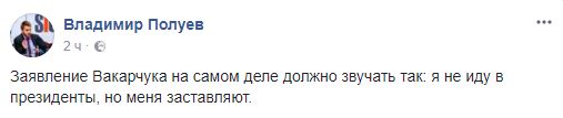"Заявление Вакарчука на самом деле должно звучать так: я не иду в президенты, но меня заставляют".