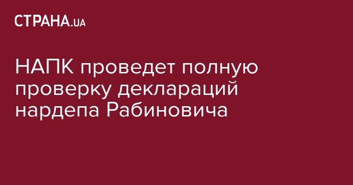 НАПК проведет полную проверку деклараций нардепа Рабиновича