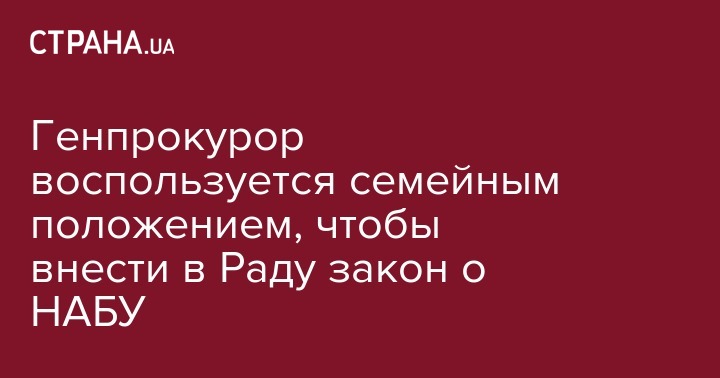 Генпрокурор воспользуется семейным положением, чтобы внести в Раду закон о НАБУ