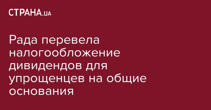 Рада перевела налогообложение дивидендов для упрощенцев на общие основания