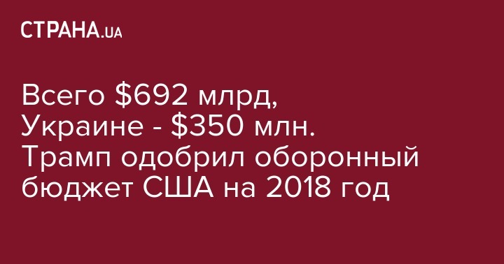 Закон об оборонном бюджете США объемом почти в 700 млрд долларов на 2018 год подписал президент США Дональд Трамп.