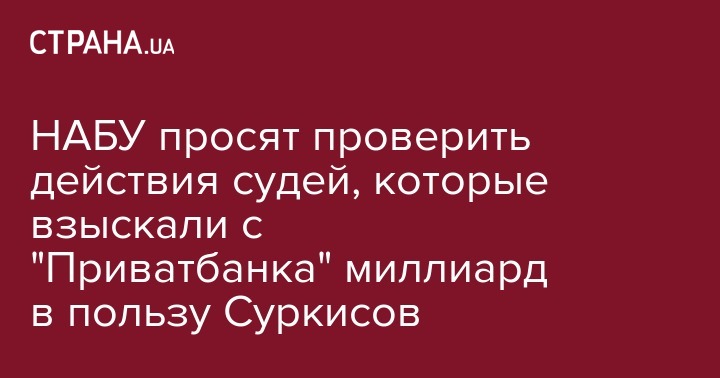 НАБУ просят проверить действия судей, которые взыскали с "Приватбанка" миллиард в пользу Суркисов