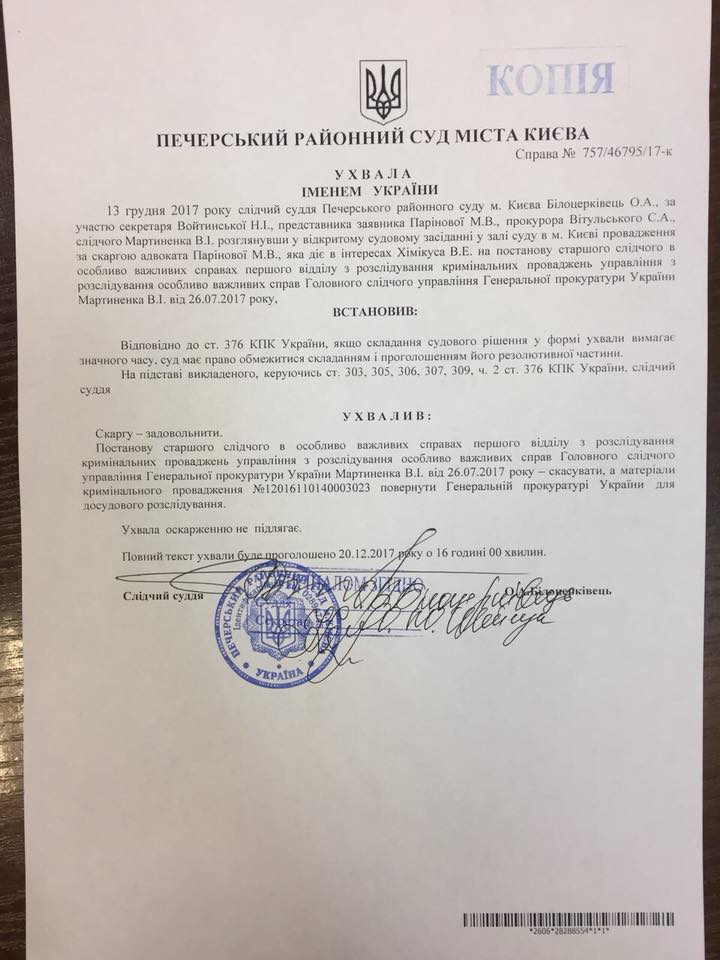 "Действия прокуратуры признаны противоправными. Суд обязал еще раз провести расследование", - сообщил Портнов.