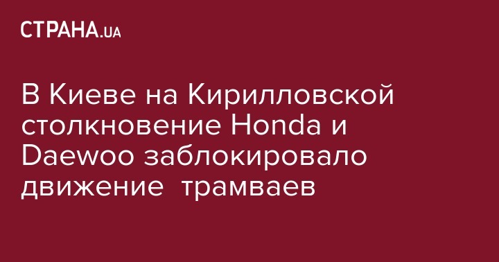 Вечером 13 декаюря произошло ДТП на  улице Кирилловской  (Подольский район Киева), столкновение двух автомобилей  Honda  и Daewoна путях  полностью заблокировало движение трамваев. Машинs повреждены незначительно, предварительно, без пострадавших.