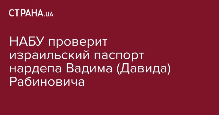 Национальное антикоррупционное бюро Украины (НАБУ) собирается провести информационно-аналитическую проверку в отношении депутата Верховной Рады Вадима Рабиновича о наличии у него двойного гражданства. Об этом сообщил журналист Василий Крутчак на своей странице в Facebook.