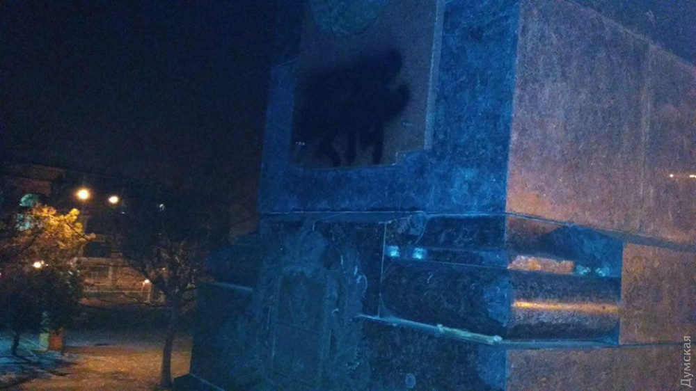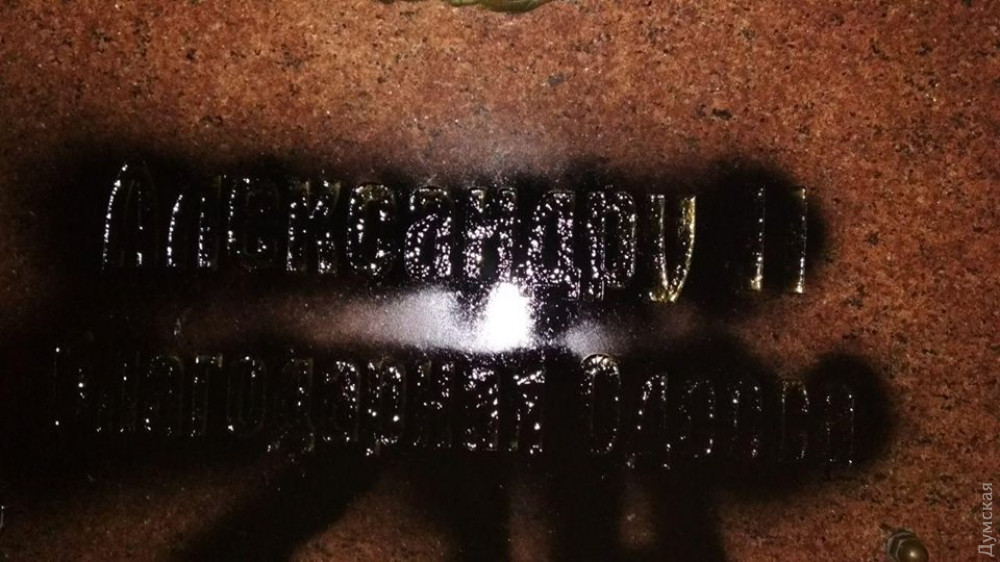 Радикалы националистической организации С14 закрасили доску с именем российского императора Александра II на Александровской колонне в одесском парке Шевченко. Об этом сообщает "Думская".
