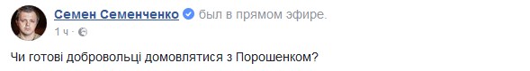 "Мы видим в тюрьмах добровольцев. Российских наемников меняют, отпускают. Тех, кто сдавал Донбасс, не осуждают... Мы не считаем, что Порошенко не сотрудничает с врагом. Он сотрудничает с ним... Возможно, в будущем он все честно расскажет следствию и вместо 20 лет получит 15", – отметил Семенченко.