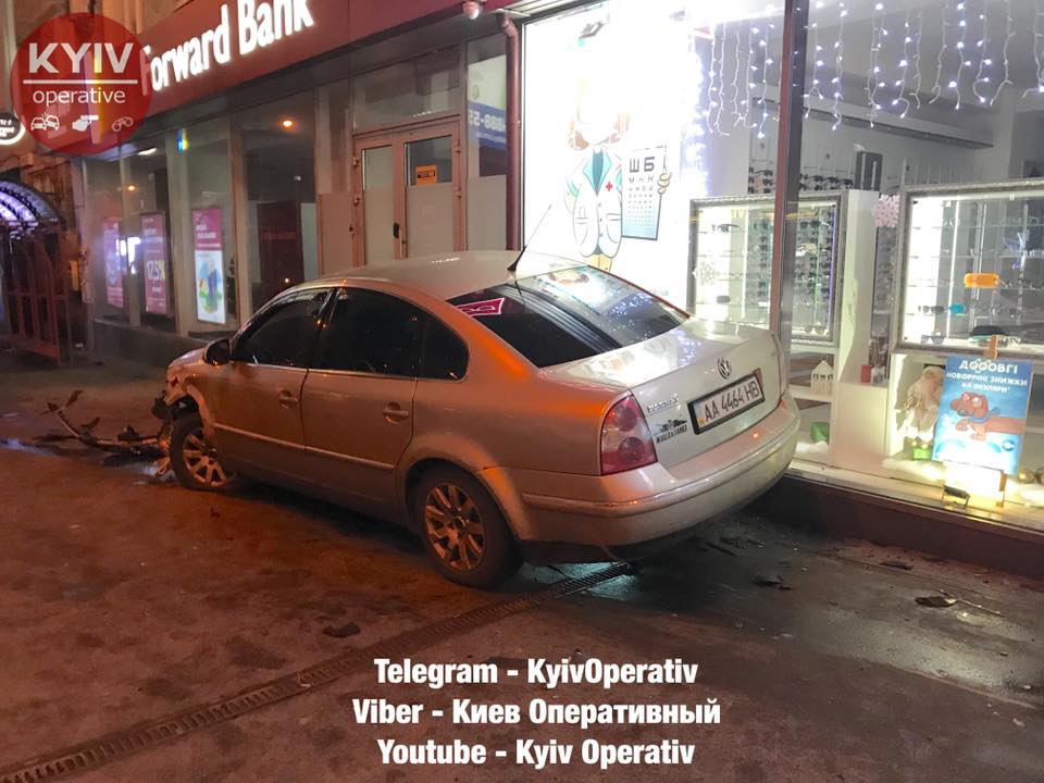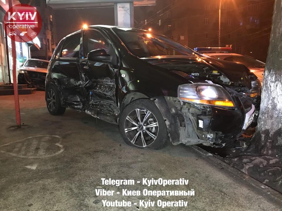 В Киеве Chevrolet и Volkswagen после столкновения вылетели на тротуар центральной улицы