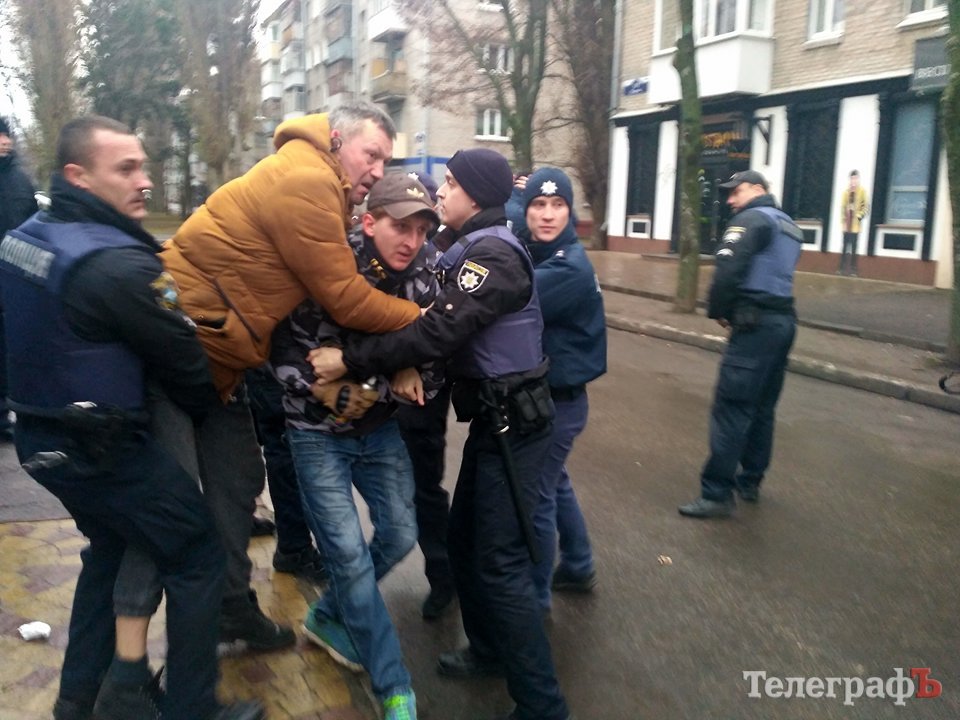 После того, как протестующие покинули место, осталось двое "азовцев", между ними и полицией завязалась потасовка. На подмогу бросились протестующие, которые пытались "отбить своего", которого правоохранители пытались задержать. Завязалась схватка, полиция применила слезоточивый газ.
