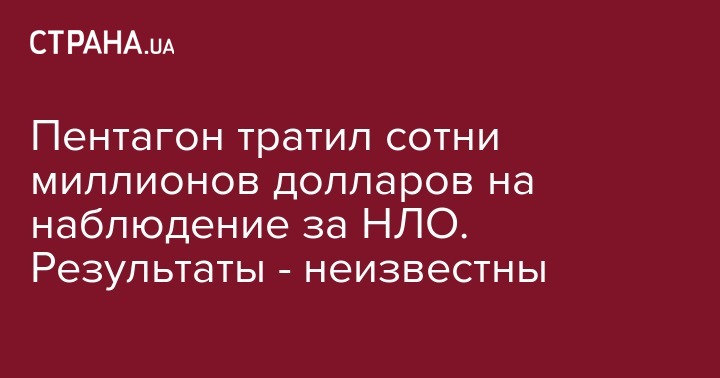 Пентагон потратил несколько сотен миллионов долларов на наблюдение за НЛО. Об этом сообщает The New York Times.
