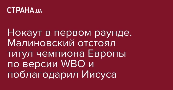 Нокаут в первом раунде. Малиновский отстоял титул чемпиона Европы по версии WBO и поблагодарил Иисуса