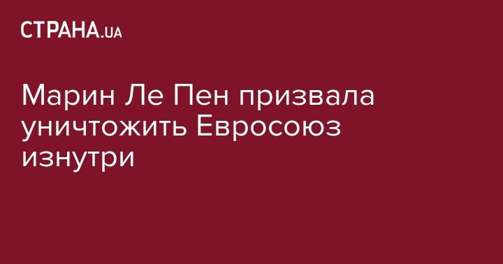 "Евросоюз теряет дыхание. Я надеюсь, что мы свергнем ЕС изнутри. Мы должны вести себя как завоеватели", - заявила Ле Пен, добавив, что Евросоюз является катастрофическим институтом, из-за которого европейский континент движется к своей гибели.