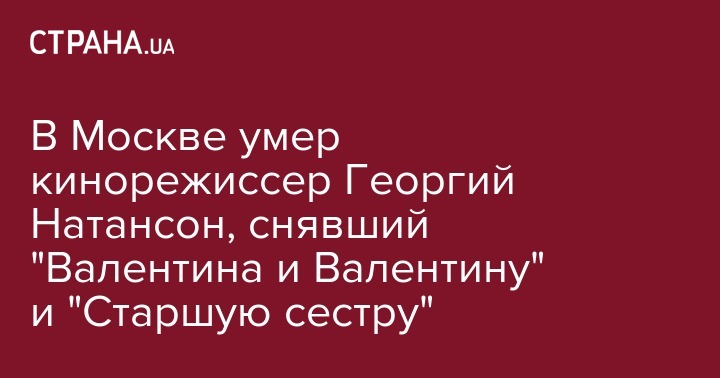 Народный артист России, кинорежиссер Георгий Натансон скончался в Москве на 97 году жизни. Об этом сообщает Интерфакс.