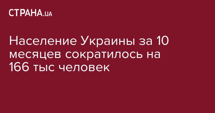 Численность населения Украины за 10 месяцев сократилась на 166,3 тыс. человек и на 1 ноября составила 42 418,2 тыс. человек.