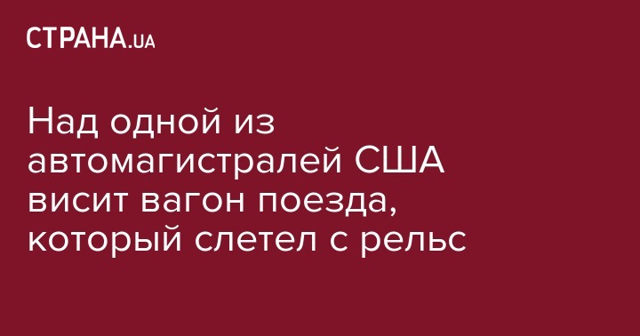 Над одной из автомагистралей США висит вагон поезда, который слетел с рельс