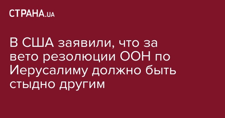 В США заявили, что за вето резолюции ООН по Иерусалиму должно быть стыдно другим