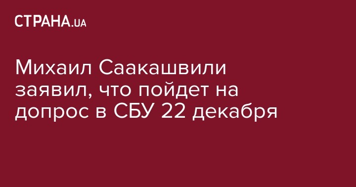 Михаил Саакашвили заявил, что пойдет на допрос в СБУ 22 декабря