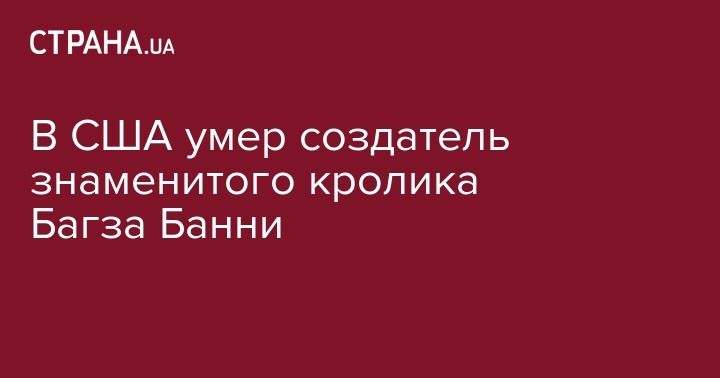 В США умер художник Боб Гивенс, который придумал образ знаменитого мультяшного кролика Багза Банни. Об этом сообщает Cinema Blend.
