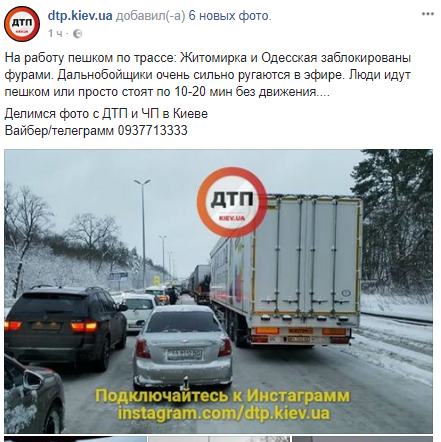 Напомним, что утром мы писали, что с  утра 19 декабря подъезд к Киеву по Житомирской трассе и со стороны Чернигова затруднен из-за погодных условий.