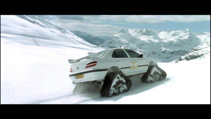 Необычный автомобиль напомнил сцену из фильма "Такси", где известный таксист рассекает снег на своей переоборудованной Peugeot.
