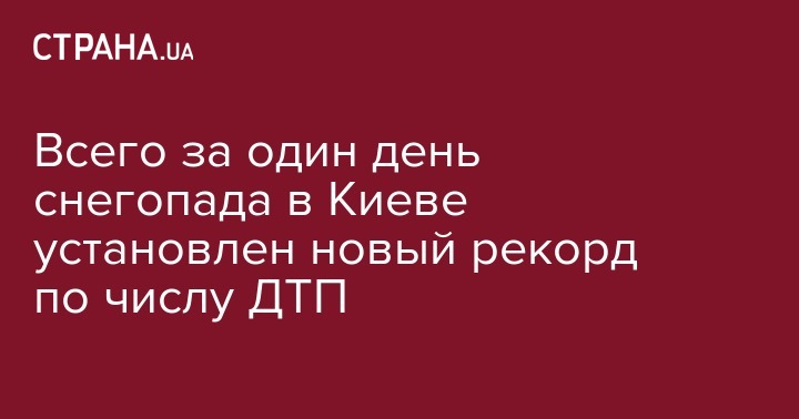 Из-за непогоды за прошедшие сутки во всей Украине произошло более 1,3 тысячи ДТП и сразу 367 из них – в Киеве, что стало рекордом. Ранее наибольшее количество ДТП  в один день на дорогах столицы составляло 100 случаев.