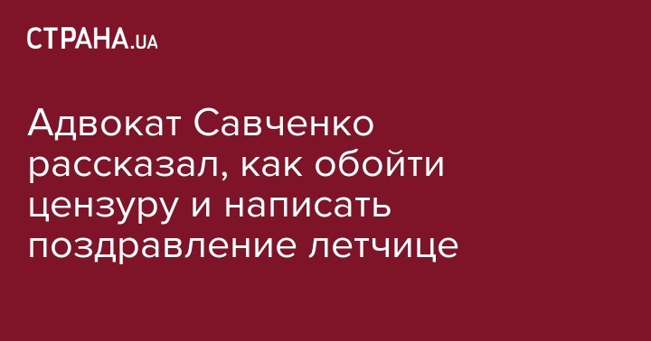 Адвокат Савченко рассказал, как обойти цензуру и написать поздравление летчице