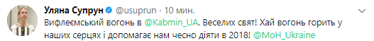 Вифлеемский огонь мира зажегся в Кабмине. Об этом в Twitter сообщила и.о. главы Министерства здравоохранения Ульяна Супрун.