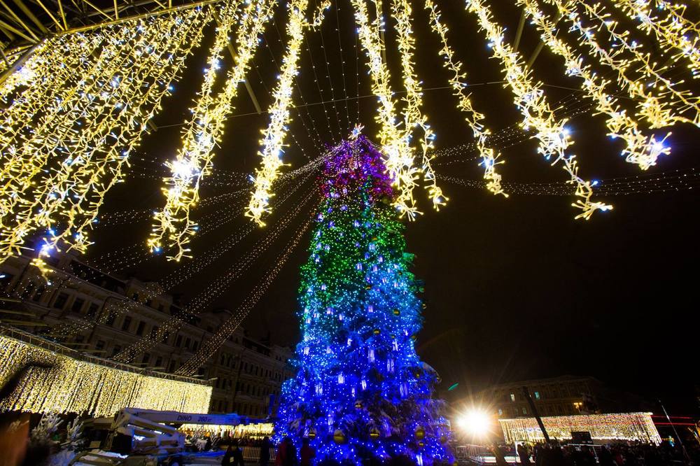 В Киеве история с установлением пихты выглядела изначально немного драматично. Вековое дерево привезли из Ивано-Франковска. В погоне за высотой (29 метров!) новогоднюю красавицу пришлось обрезать при транспортировке. Потом ее реанимировали и вчера состоялось открытие главной новогодней ели страны.