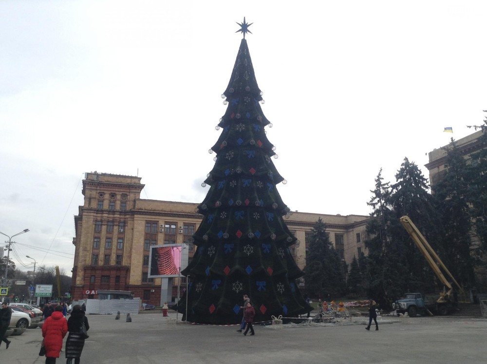 А вот в Днепре елку установили на центральной площади Днепра. После сложного монтажа городской елки высотой в 23 метра, её торжественно откроют 23 декабря.