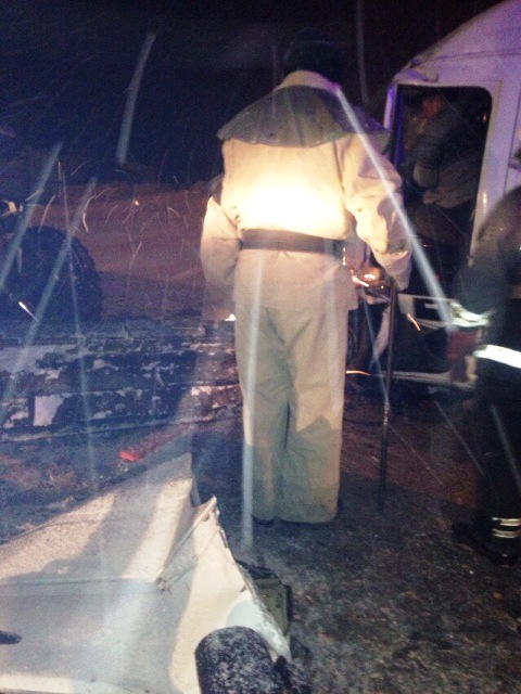 Чтобы достать его из машины, спасателям пришлось срезать бензорезом водительскую дверь и стойку, которой и заблокировало ноги мужчины.